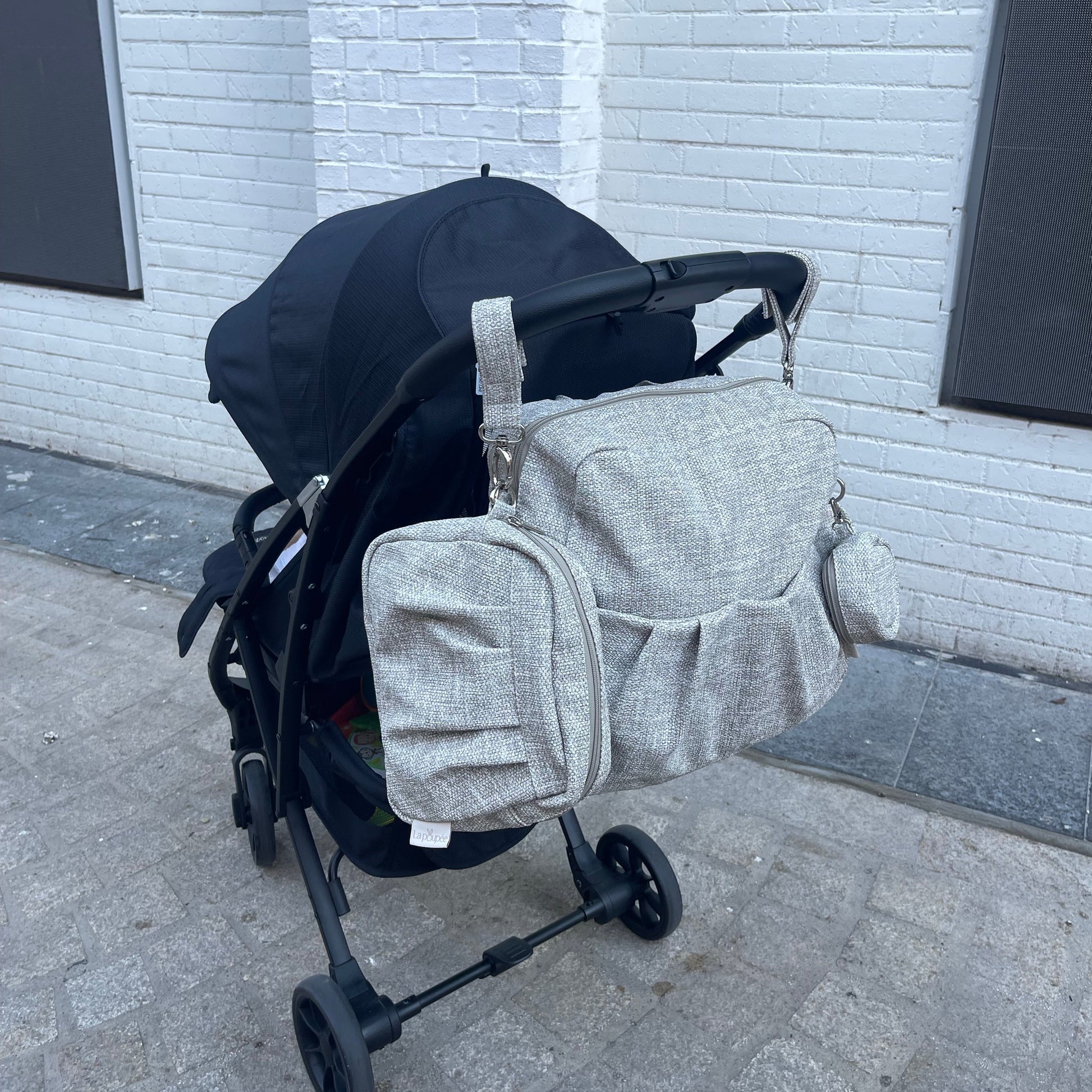 התיק מגיע עם נרתיק החתלה תואם, נרתיק מוצצים תואם ותופסנים לעגלה לנוחות מקסימלית.