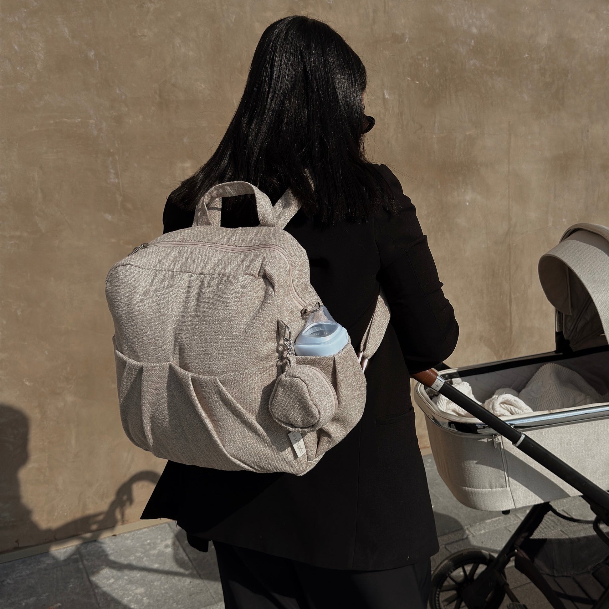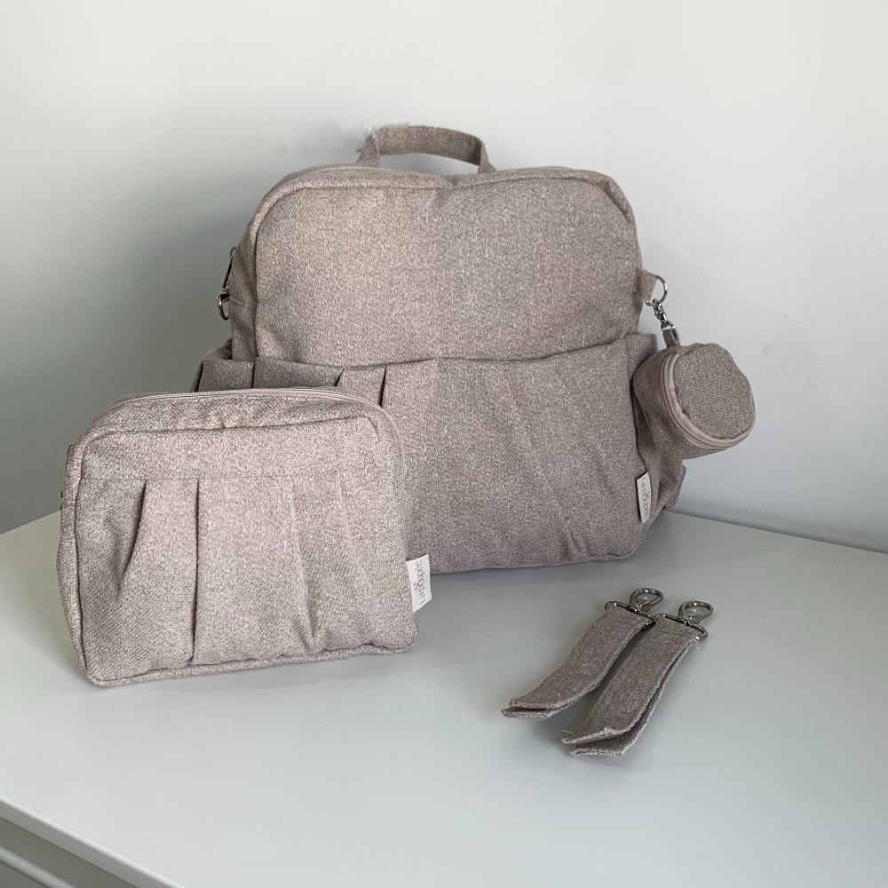 התיק מגיע עם נרתיק החתלה תואם, נרתיק מוצצים תואם ותופסנים לעגלה לנוחות מקסימלית.